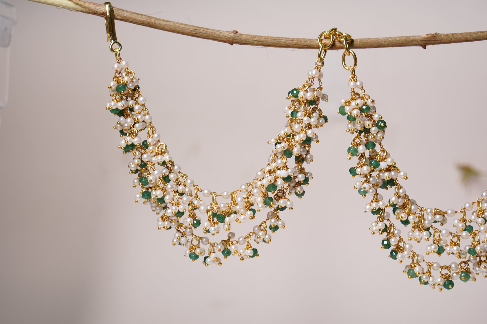 These stunning Kaan Patti earrings combine the timeless beauty of Mother of Pearl with intricate traditional designs. The delicate nacre of the MOP gives a soft, iridescent glow, enhancing the elegance of the piece.