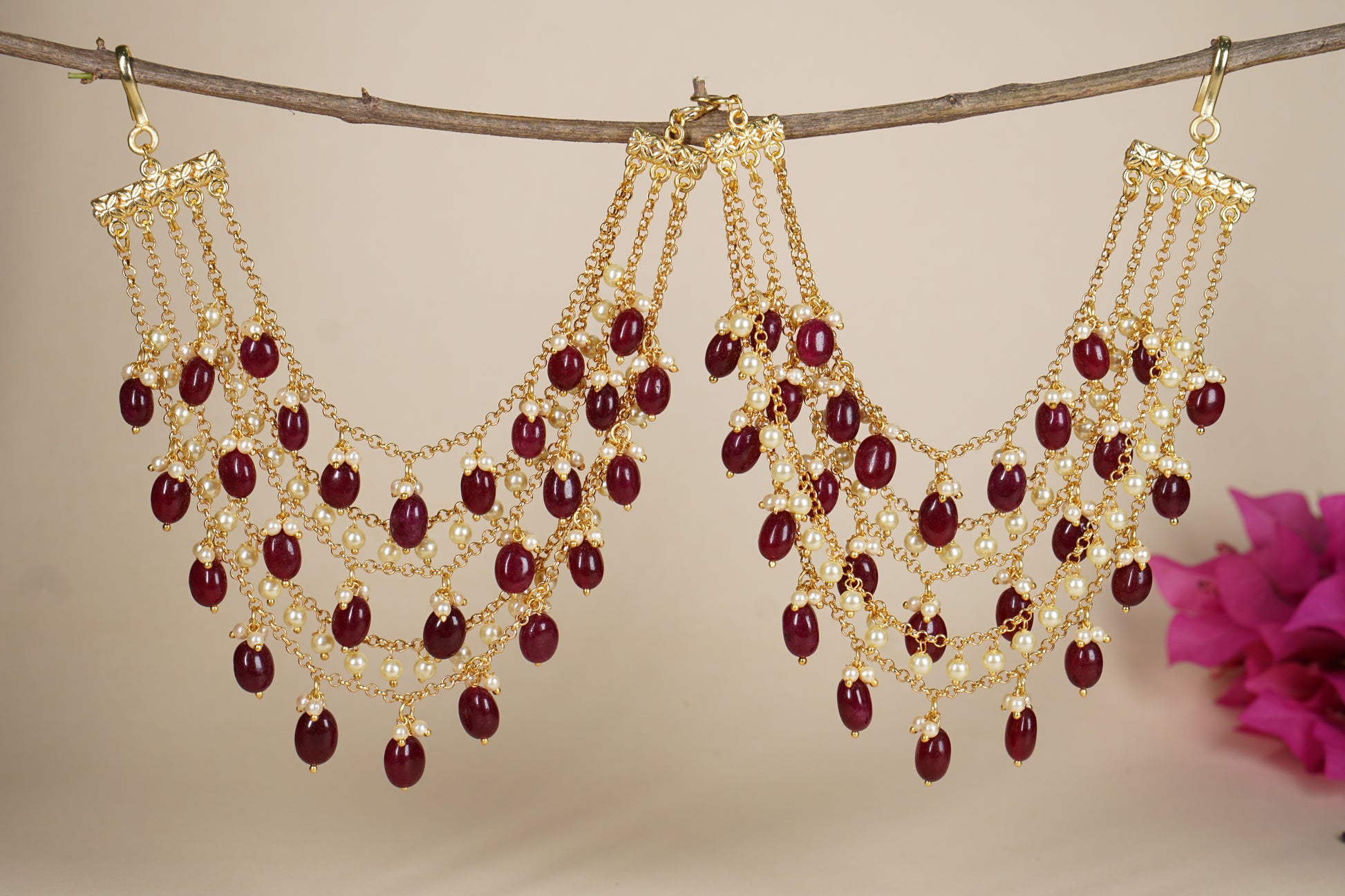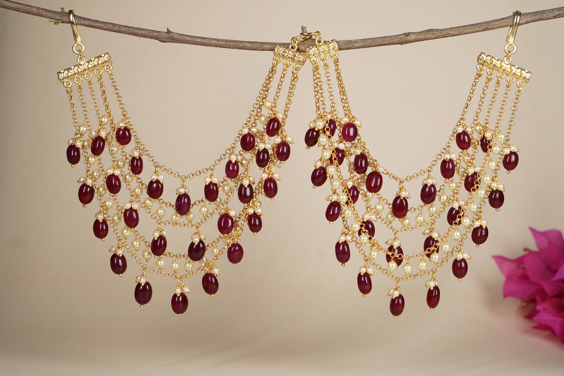 Attachment: A hairpin or clip mechanism to secure along the hairline, with matching danglers or studs for the earlobes.