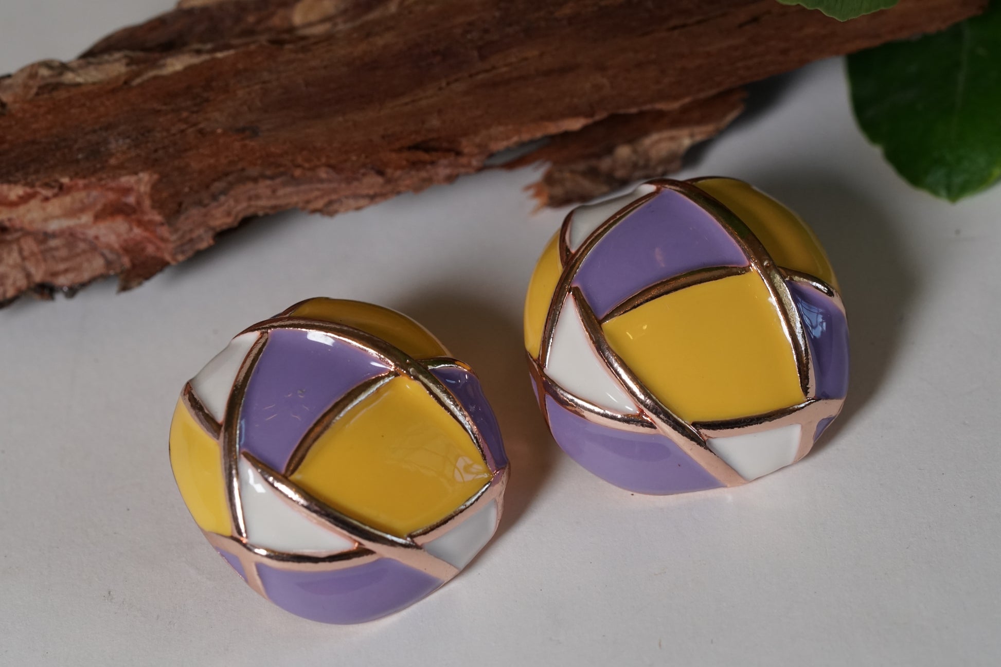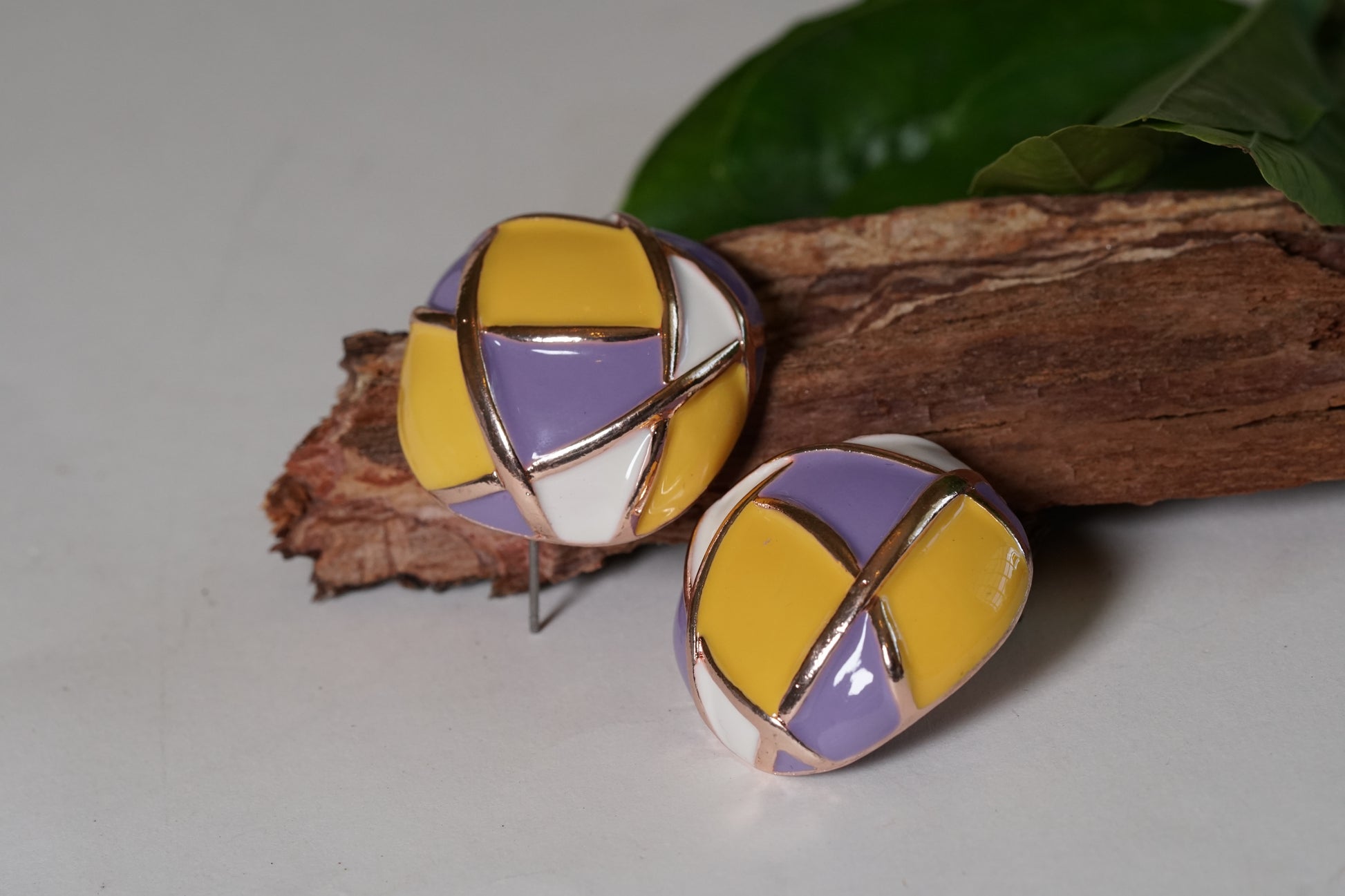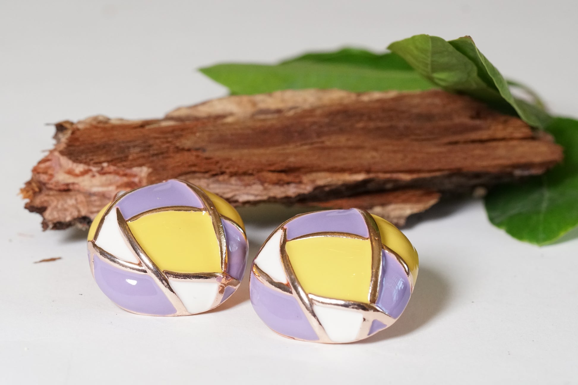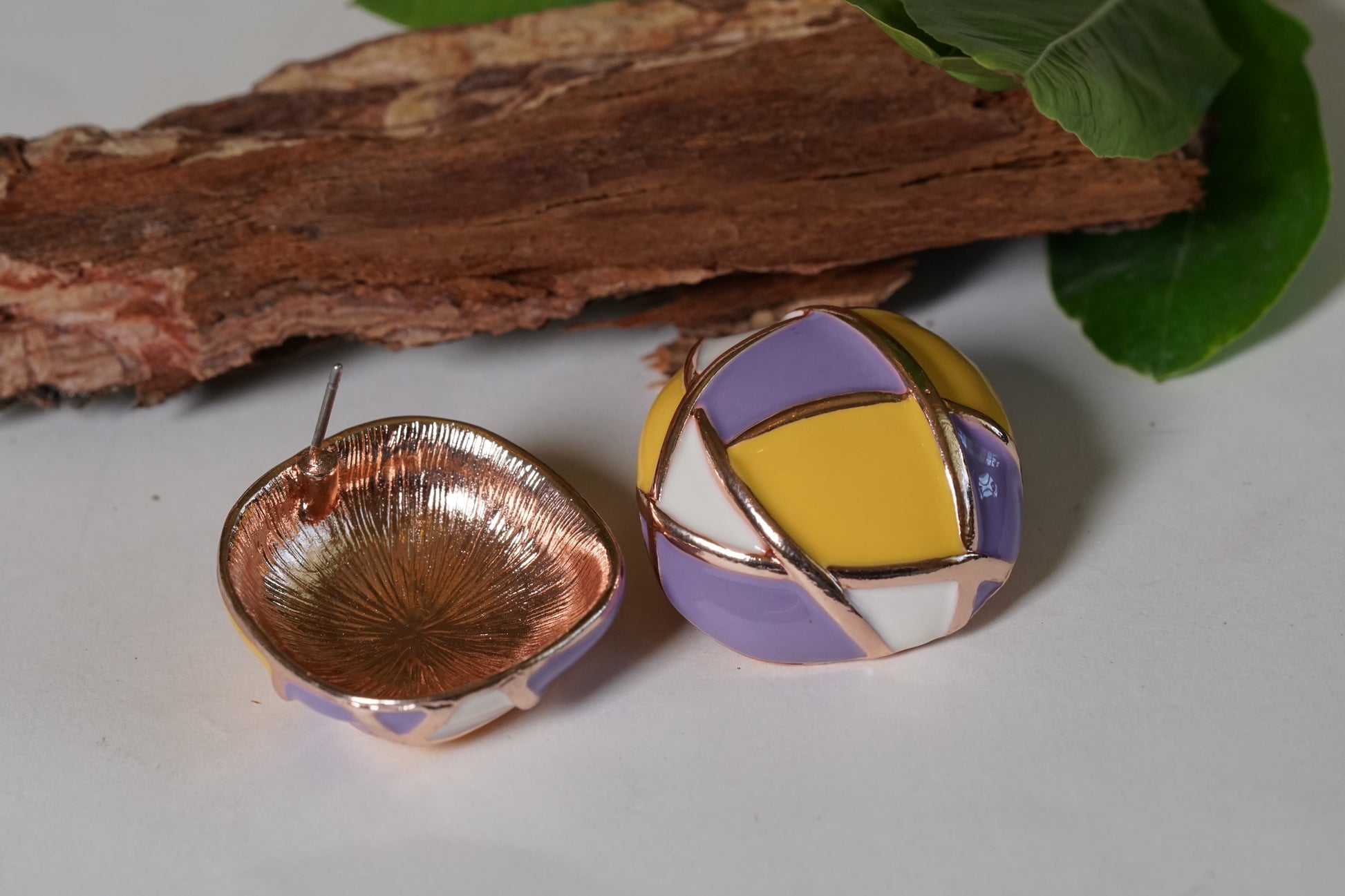 Enamel studs are a chic and vibrant type of earring that combines the elegance of a simple stud with the bold, colorful appeal of enamel. These earrings feature a smooth, often glossy enamel coating that can come in a wide range of colors, patterns, and designs, making them versatile enough for various styles and occasions.