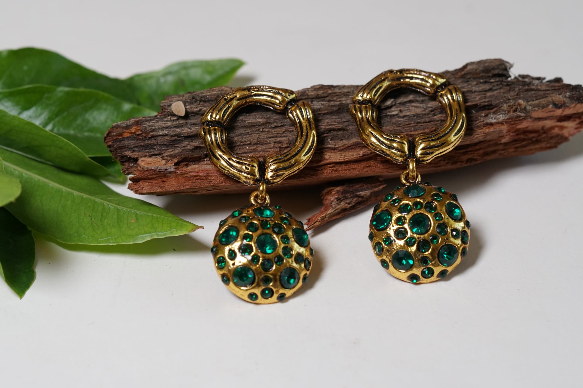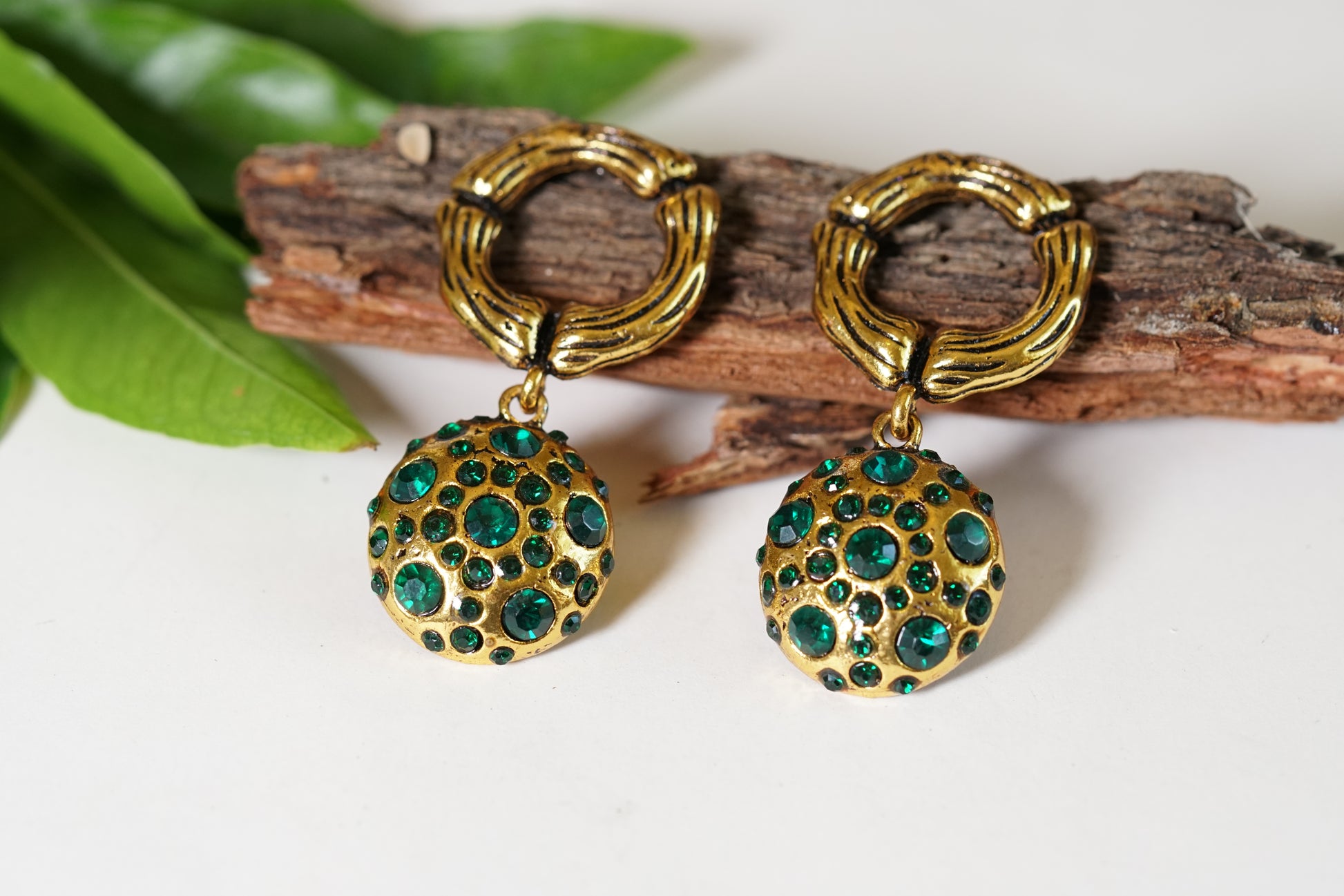 : These earrings showcase a vibrant green stone reminiscent of emeralds, offering a deep and mesmerizing color that draws attention. They are ideal for those who love bold, eye-catching accessories