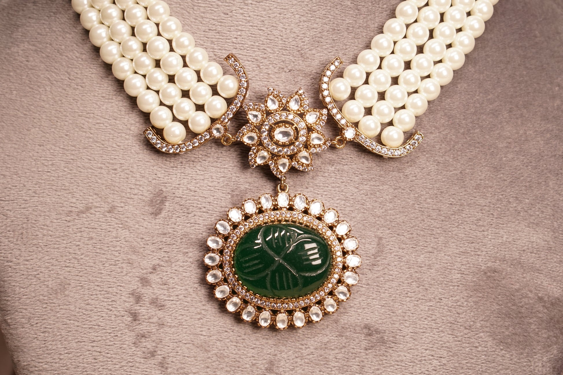 Green stone polki necklace set H1-078
