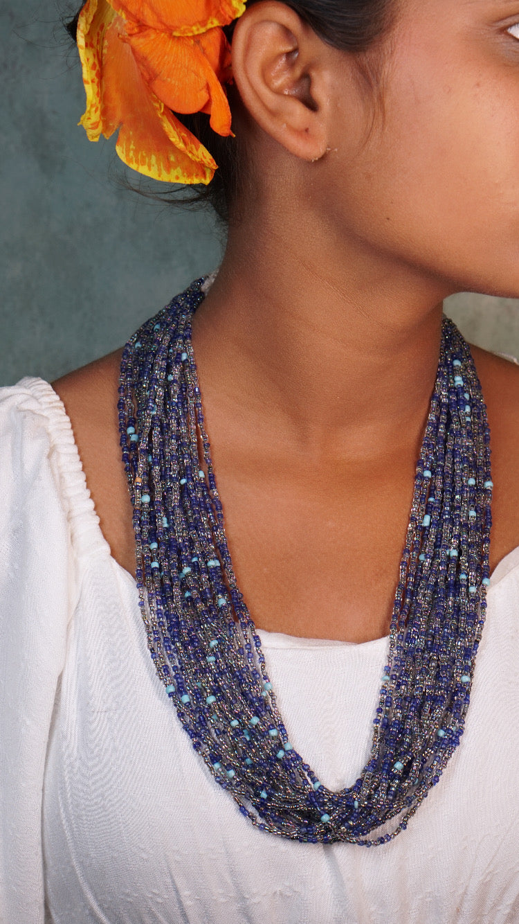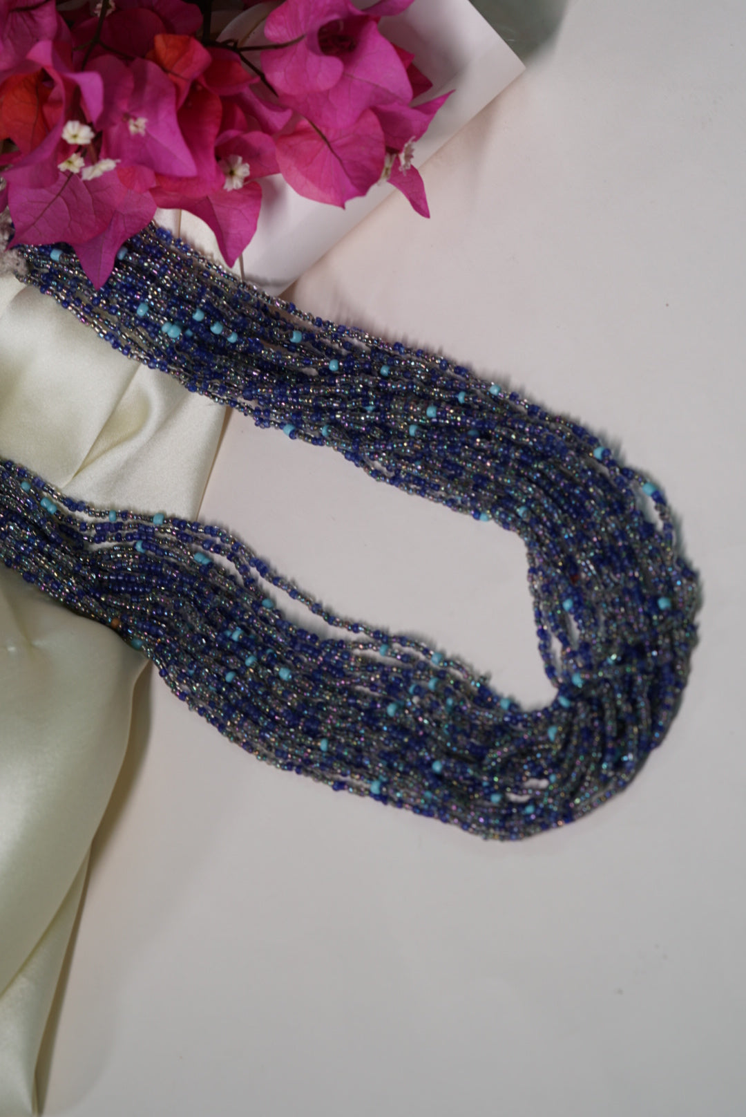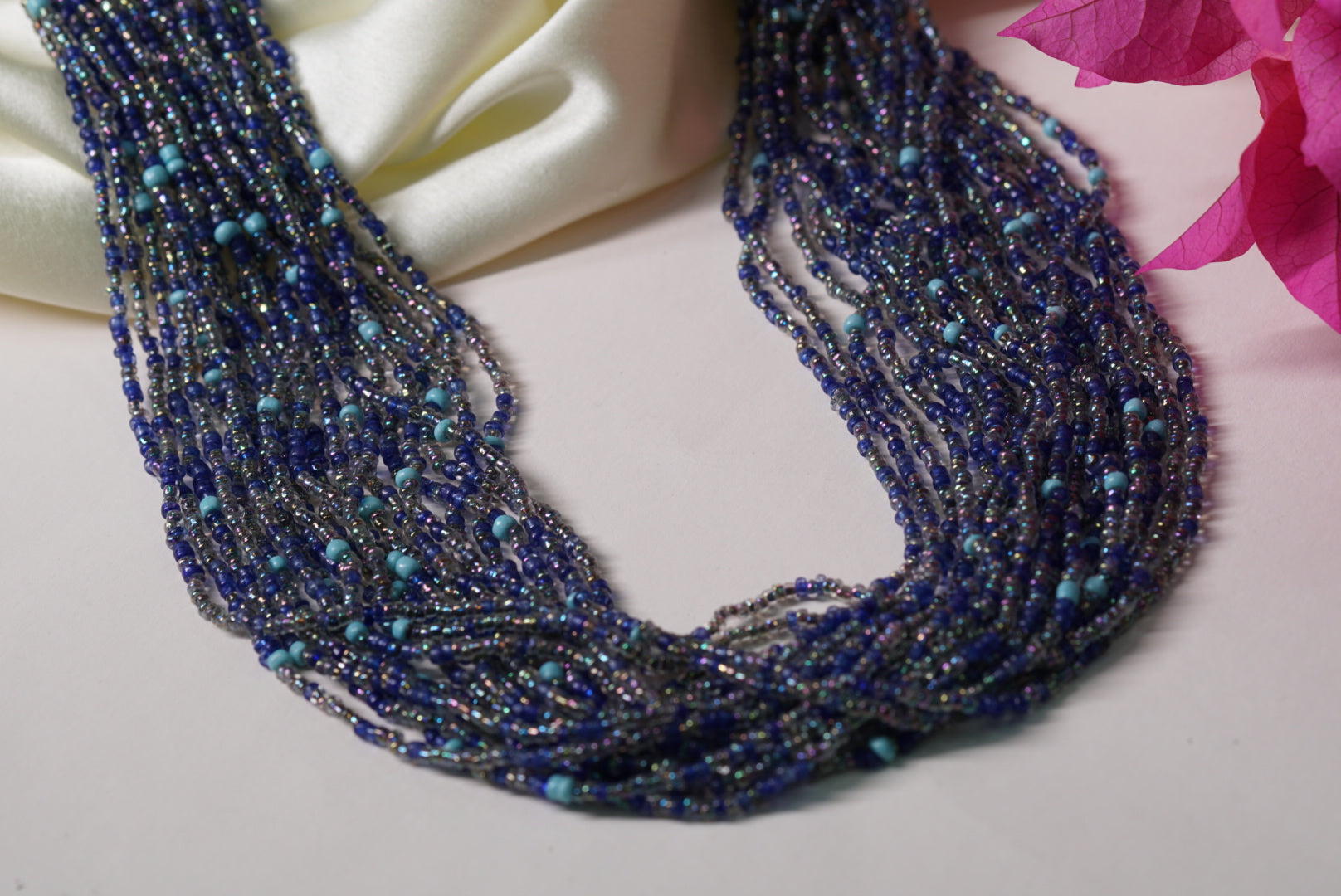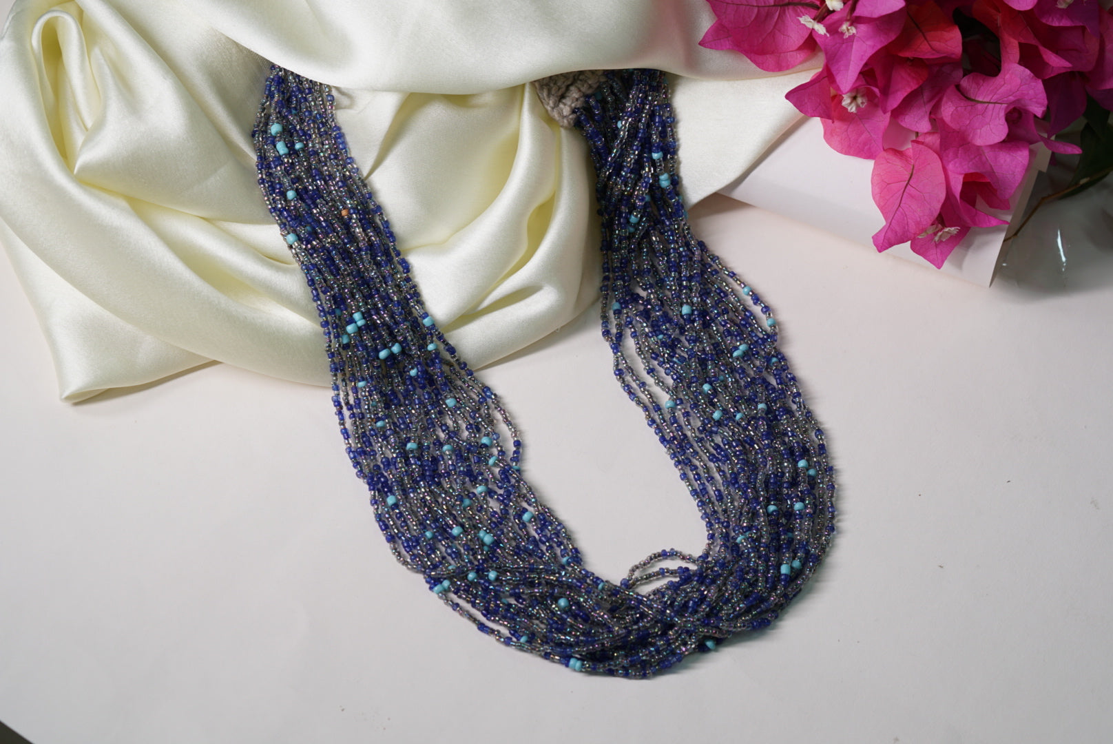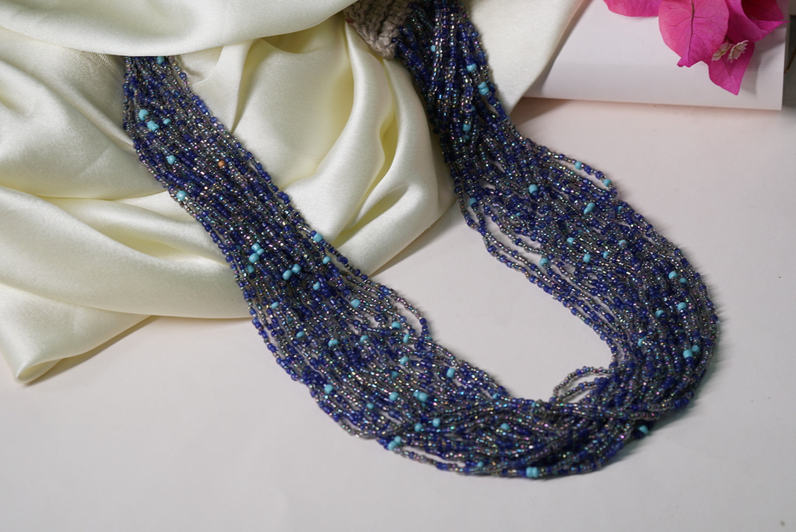 A Blue beads necklace can be a beautiful and versatile accessory, suitable for various occasions depending on its design, material, and style.