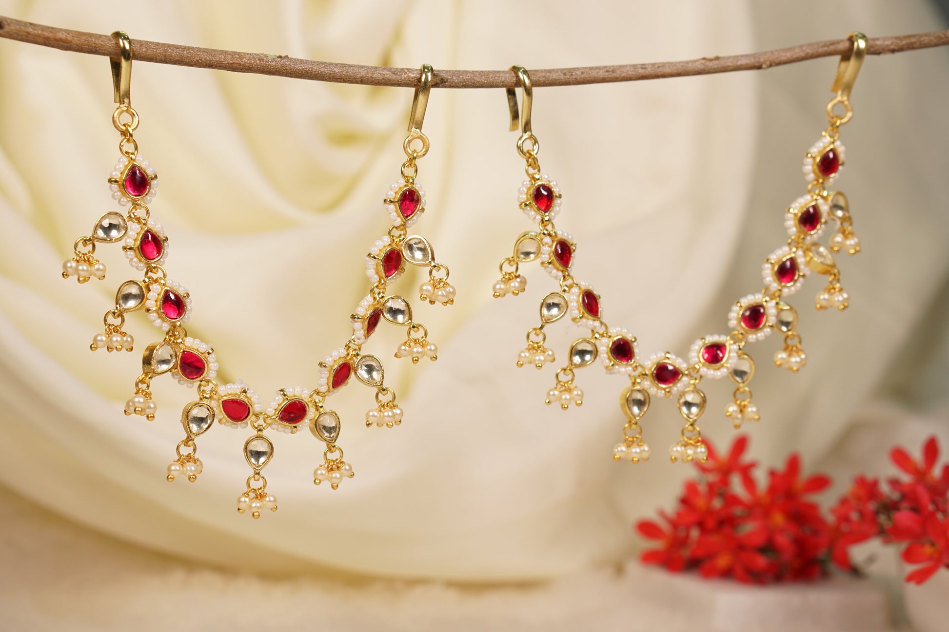 These stunning Kaan Patti earrings combine the timeless beauty of Mother of Pearl with intricate traditional designs. The delicate nacre of the MOP gives a soft, iridescent glow, enhancing the elegance of the piece