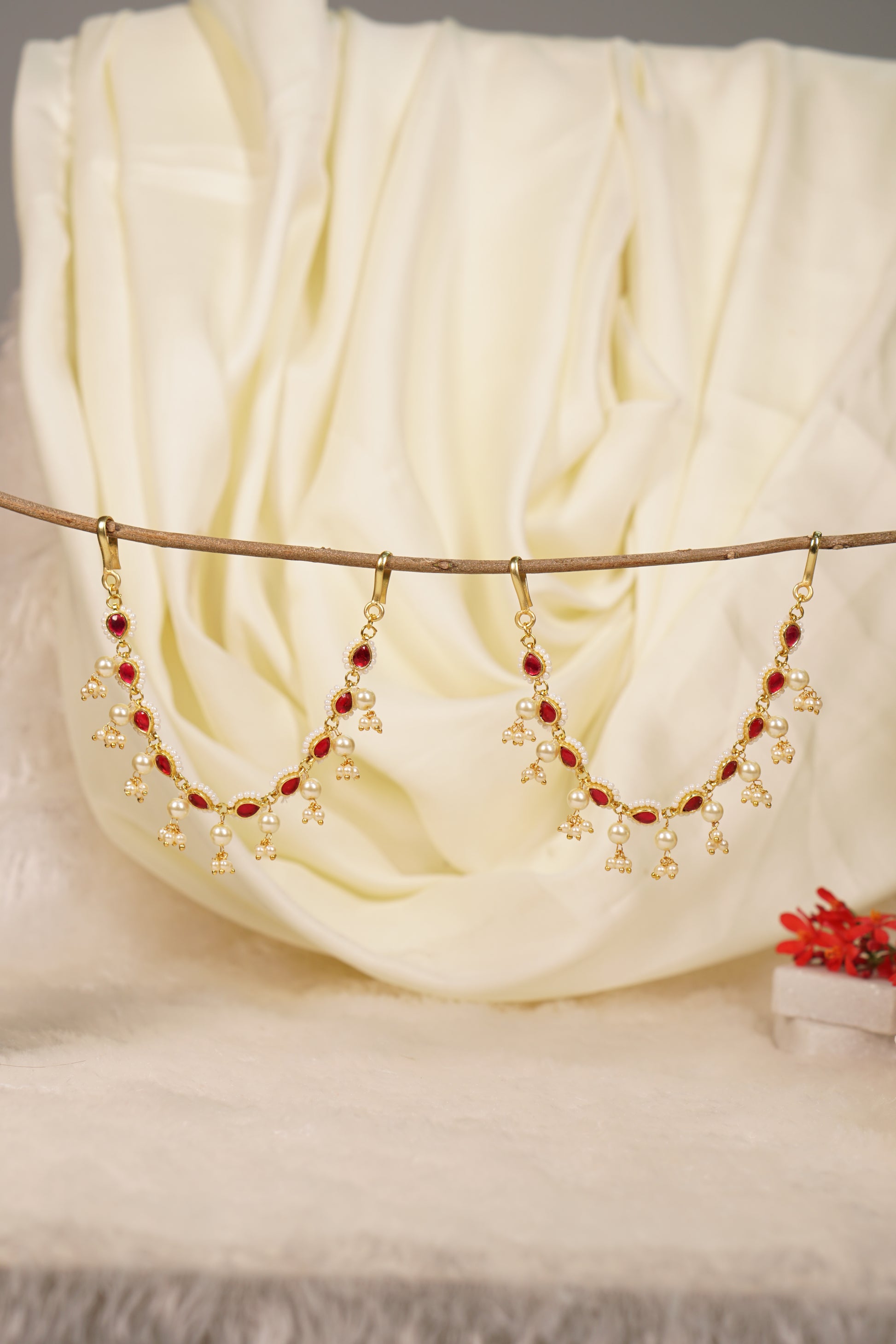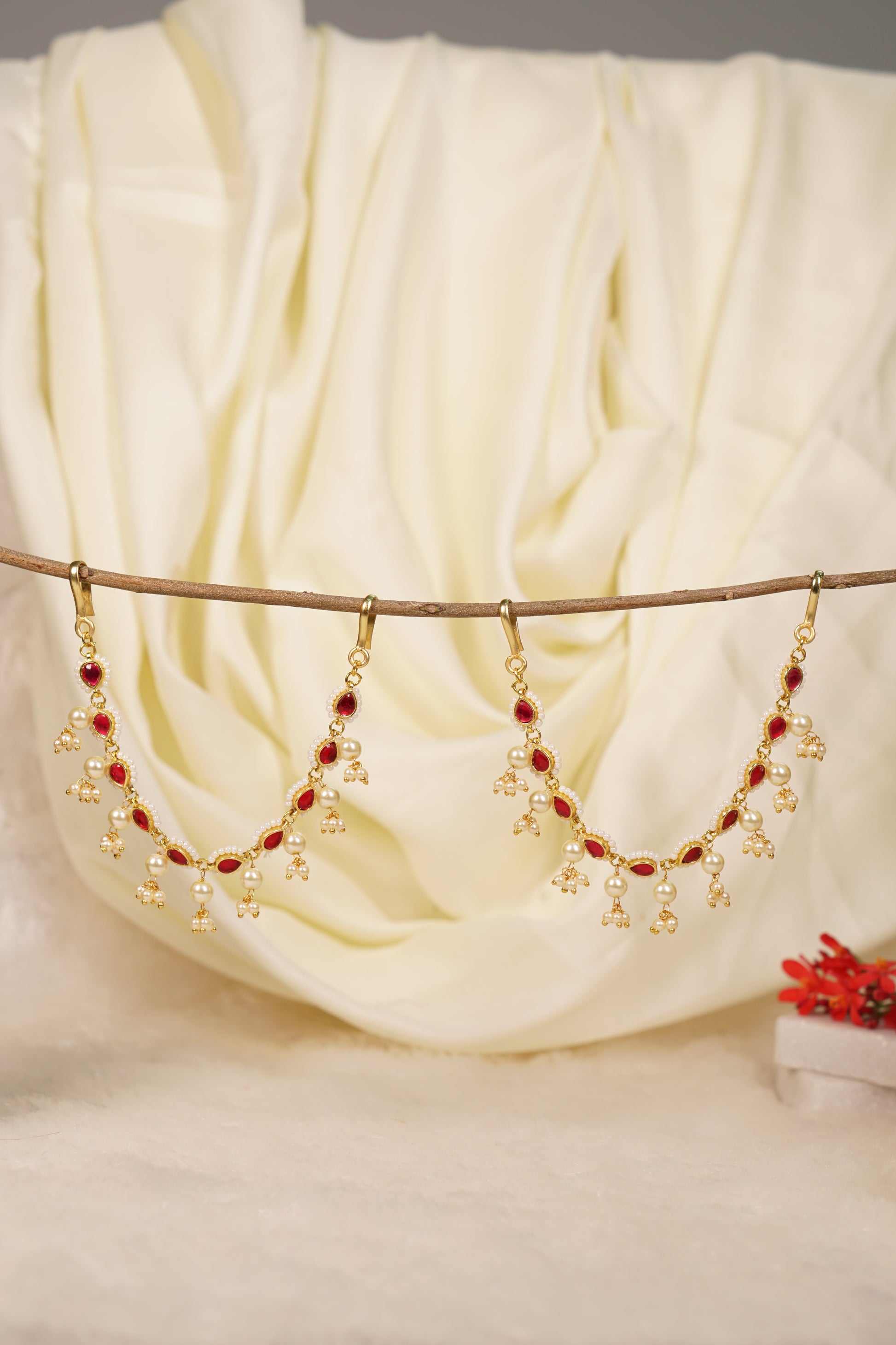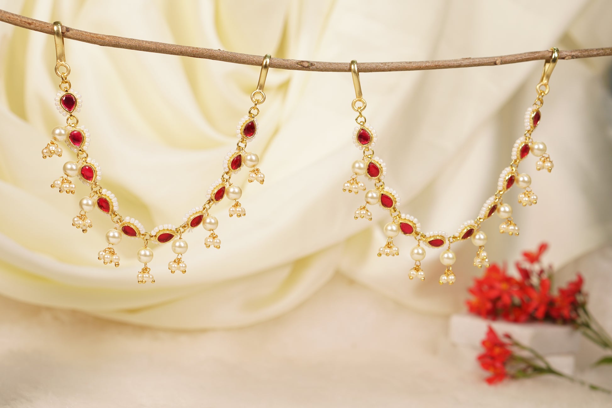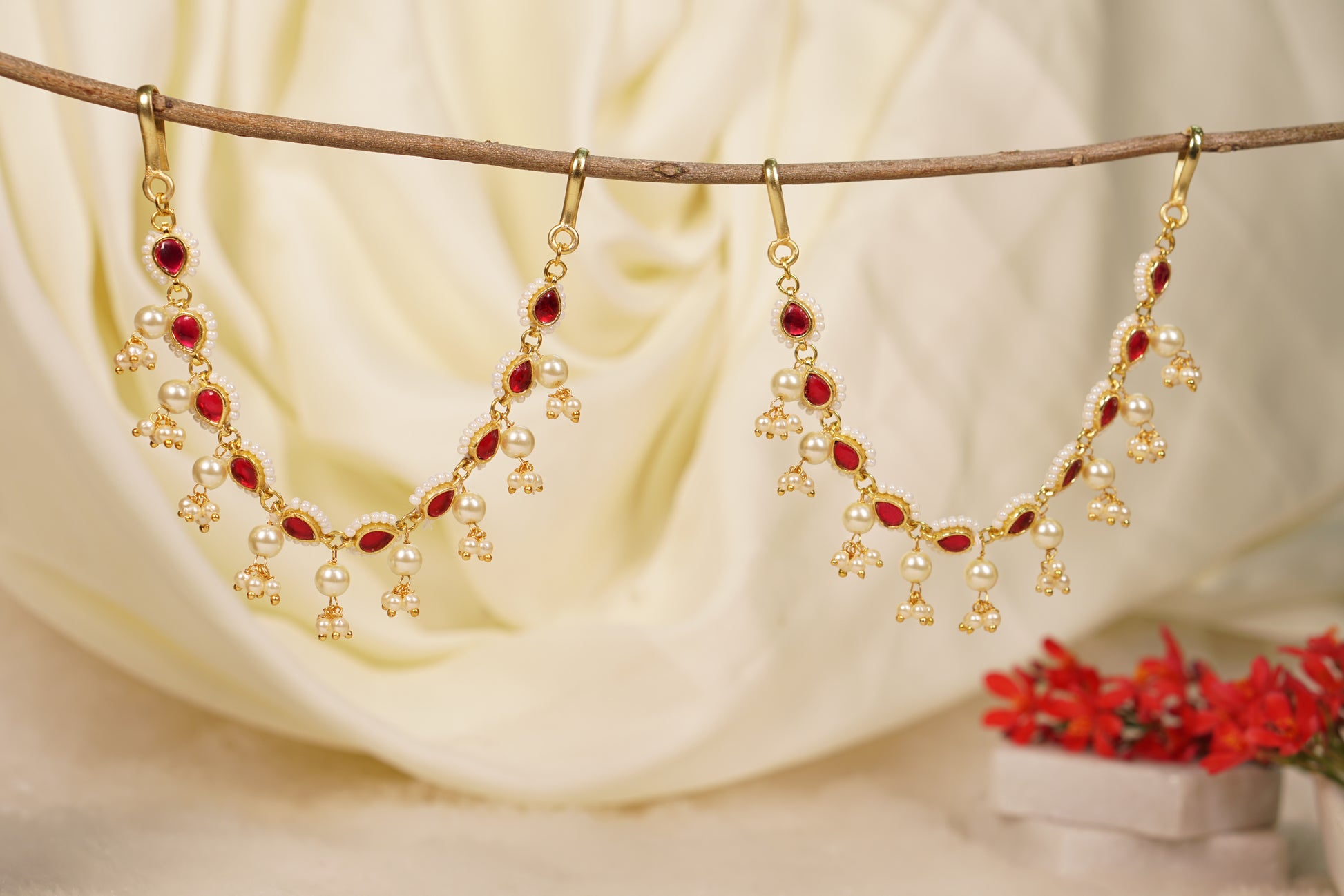 These stunning Kaan Patti earrings combine the timeless beauty of Mother of Pearl with intricate traditional designs. The delicate nacre of the MOP gives a soft, iridescent glow, enhancing the elegance of the piece.