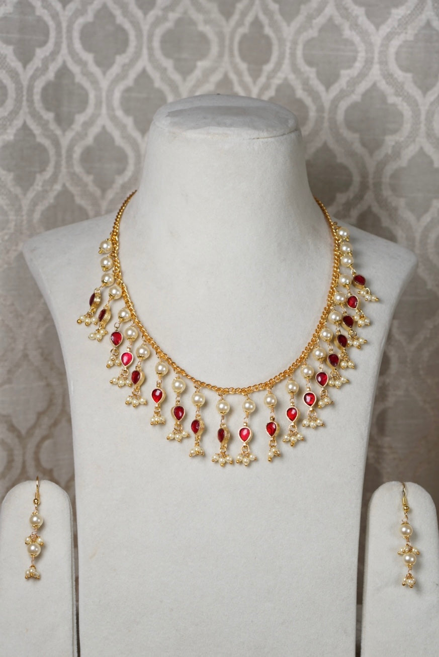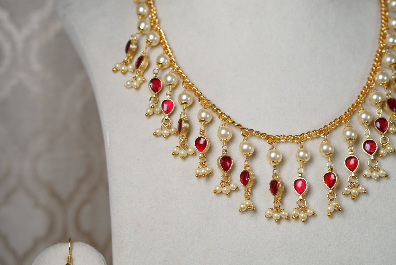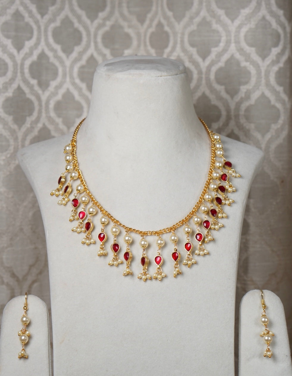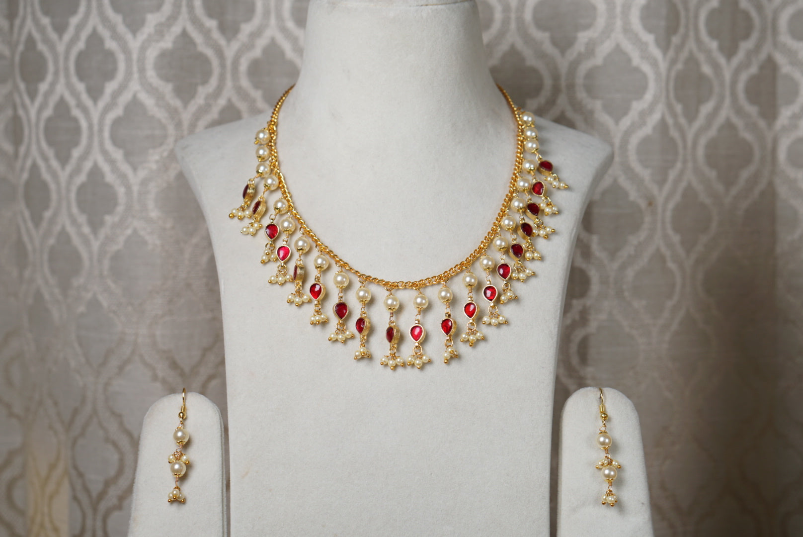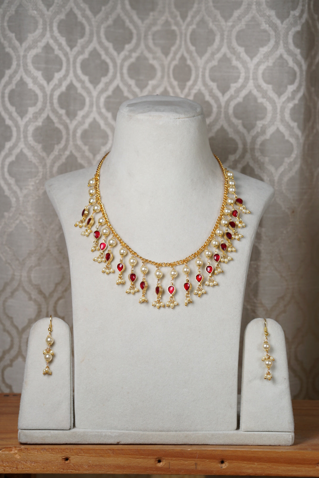 A Kundan Necklace Set is a stunning jewelry ensemble, characterized by its intricate design and high-quality craftsmanship. Originating from Rajasthan, India, Kundan jewelry is known for its traditional style of setting uncut diamonds or gemstones in gold or other precious metals. The term "Kundan" refers to the setting technique, where gemstones are placed in a gold bezel without any holes, ensuring the stones stay in place through the skillful use of molten gold.