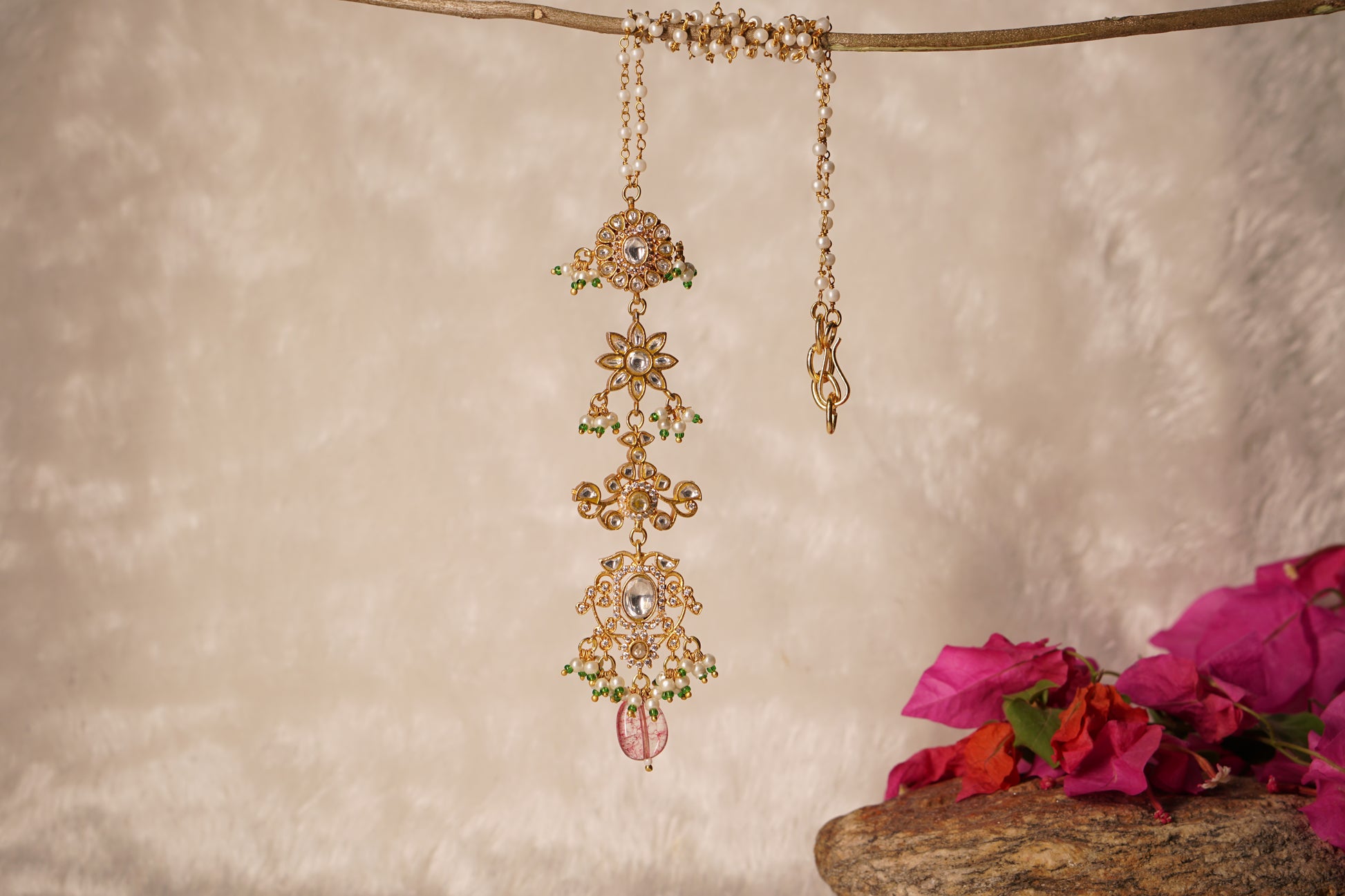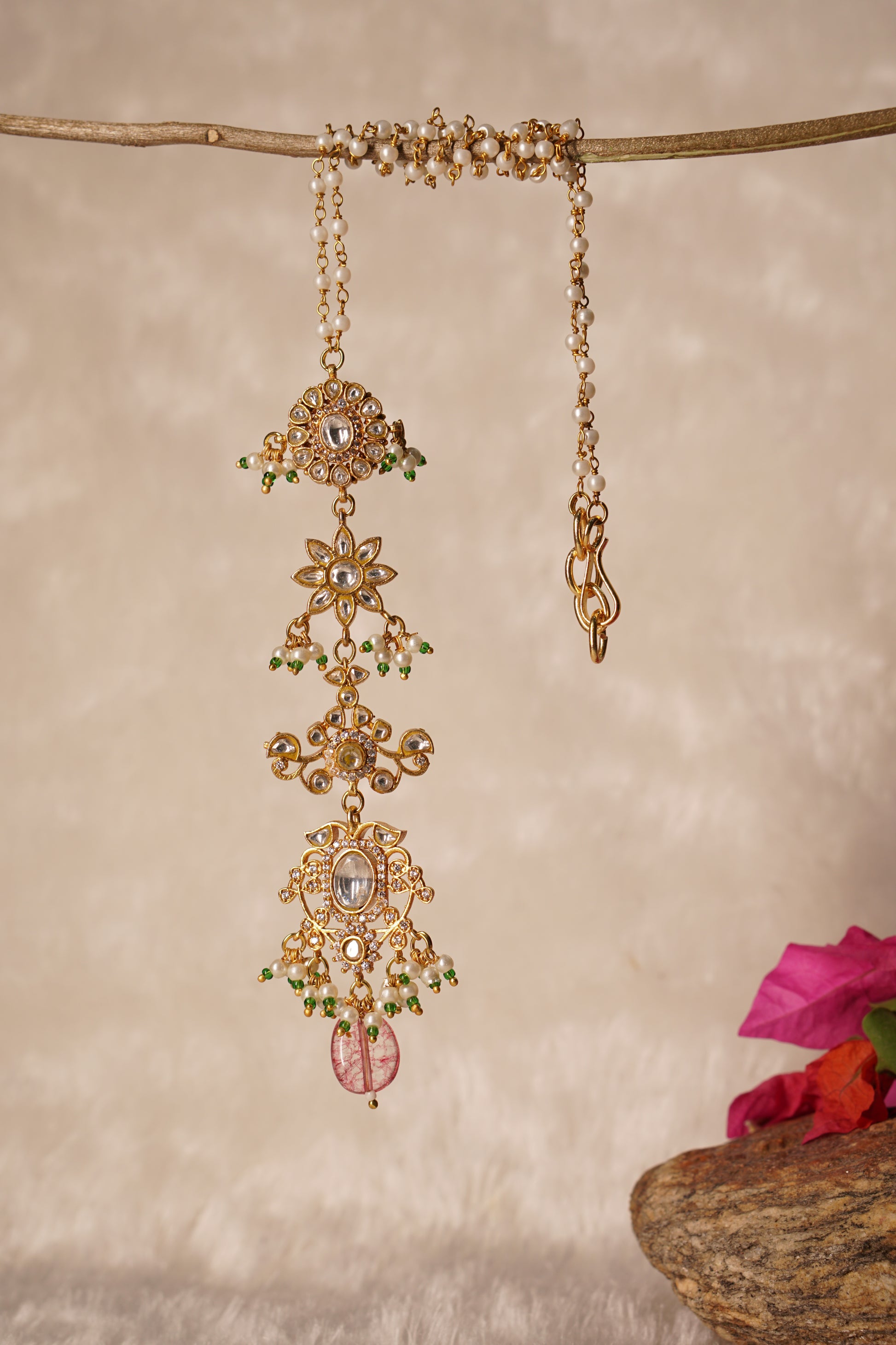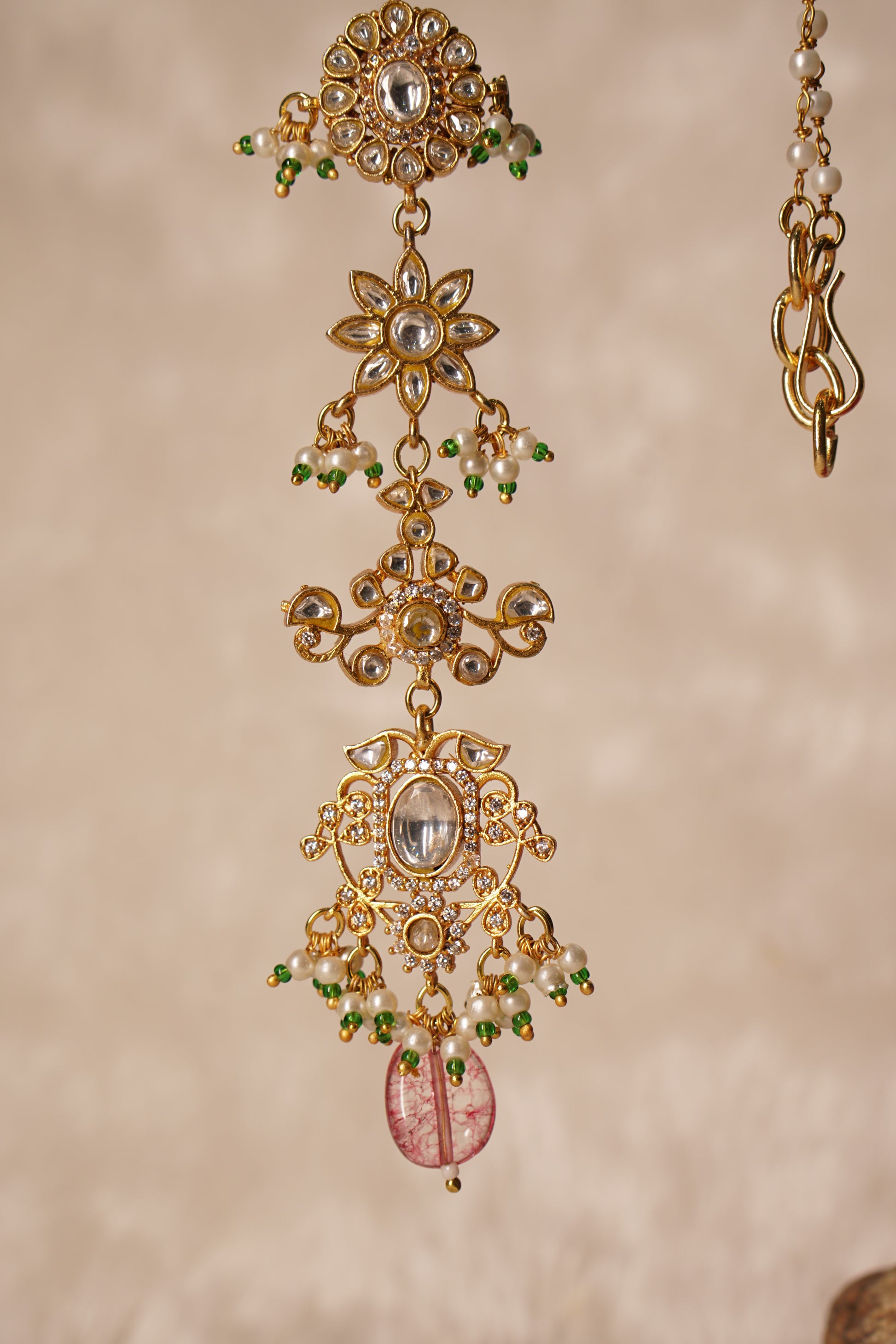A Kundan Necklace Set is a stunning jewelry ensemble, characterized by its intricate design and high-quality craftsmanship. Originating from Rajasthan, India, Kundan jewelry is known for its traditional style of setting uncut diamonds or gemstones in gold or other precious metals. The term "Kundan" refers to the setting technique, where gemstones are placed in a gold bezel without any holes, ensuring the stones stay in place through the skillful use of molten gold.