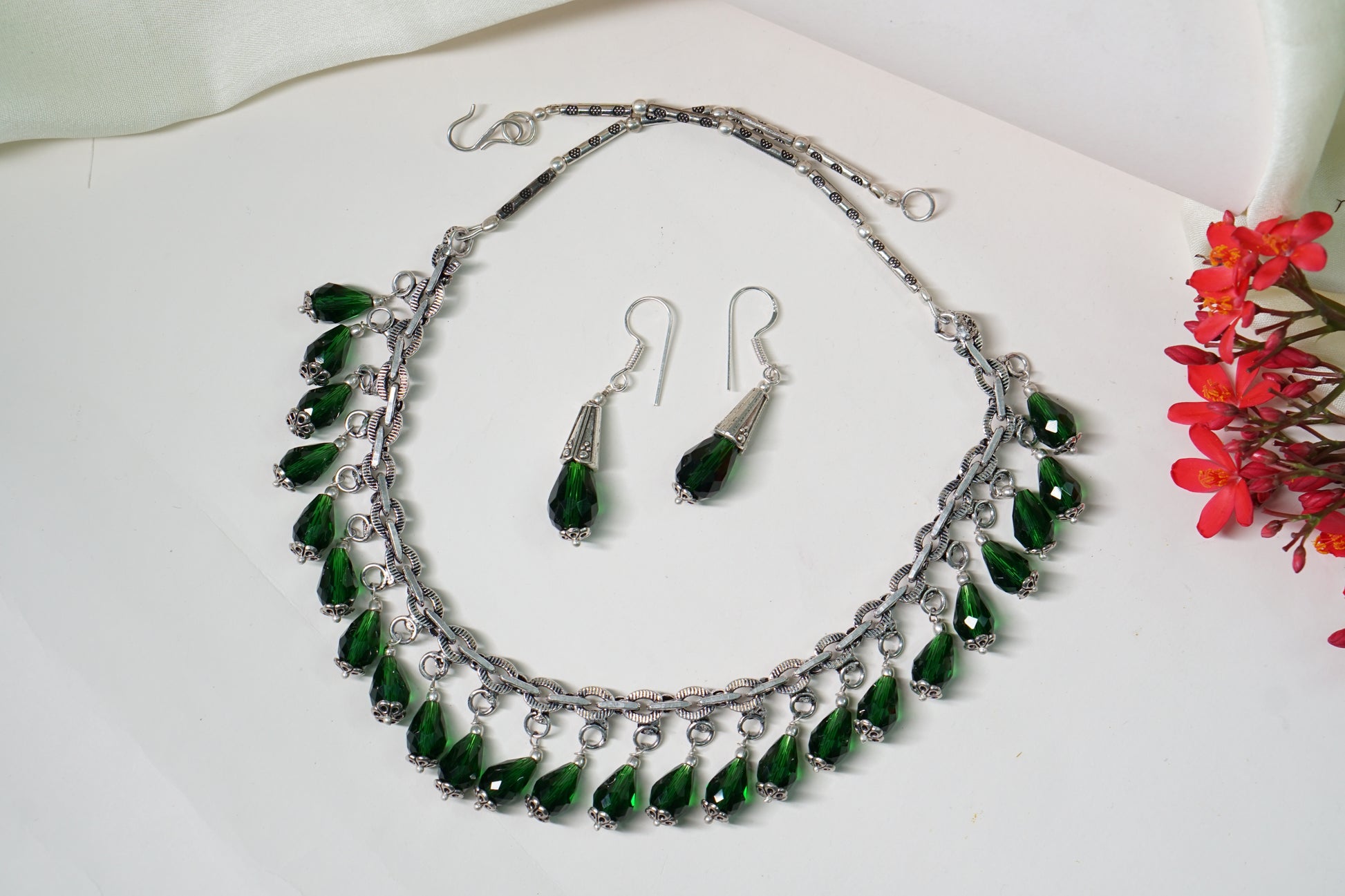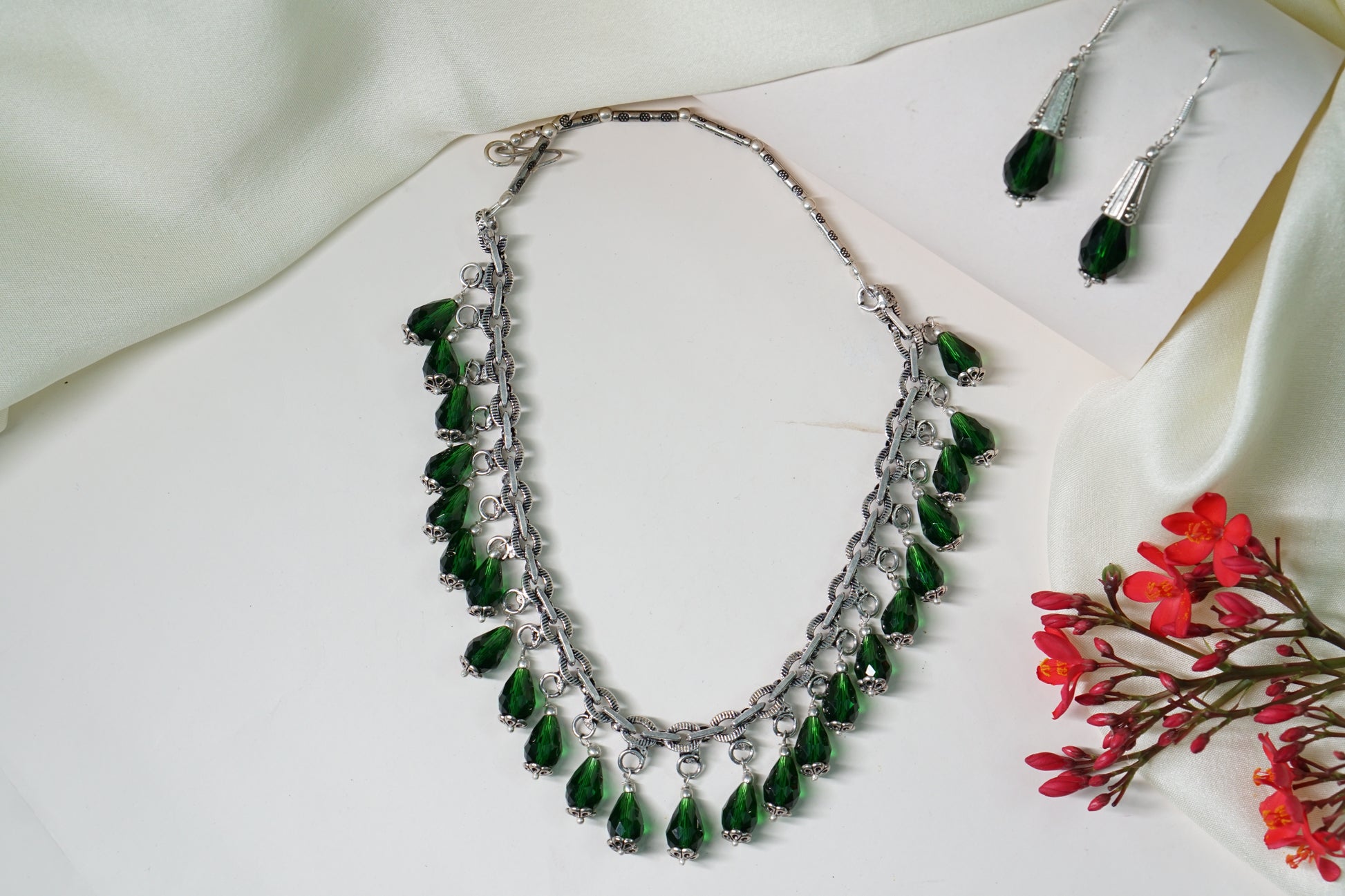 Oxidised necklaces are bold, vintage-inspired jewellery pieces featuring a darkened or blackened metal finish, created through an oxidation process. This technique gives the necklace an antique, rustic, or gothic look while enhancing intricate designs and textures.