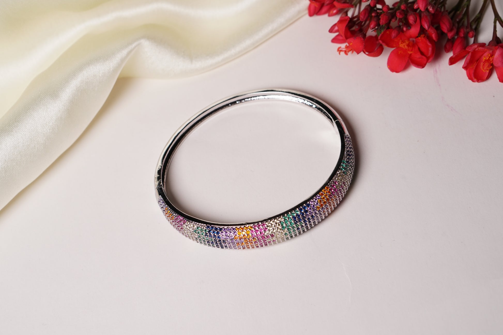 American Diamond bangles are a stunning and traditional form of Indian jewelry, known for their intricate craftsmanship, regal elegance, and timeless appeal. Kundan jewelry, which originated during the Mughal era, is characterized by its use of polished gemstones set in gold foil and often embellished with enamel work (meenakari). Kundan bangles are a popular choice for brides, wedding guests, and anyone looking to add a touch of grandeur to their attire. Here’s a detailed description of Kundan bangles: