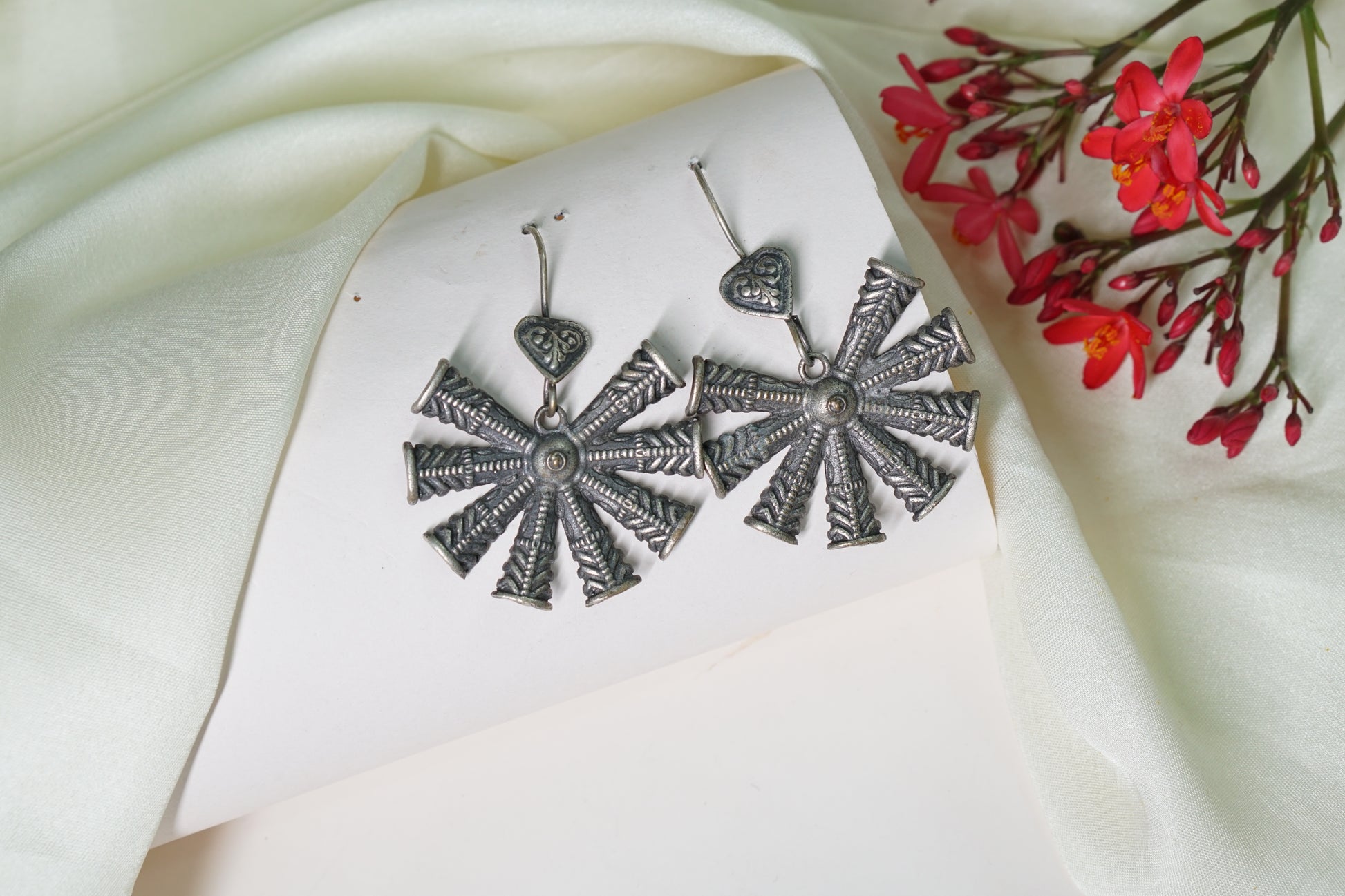 Oxidised earrings are stylish and vintage-inspired jewellery pieces that feature a darkened or blackened finish, created through a controlled oxidation process. This technique gives the metal (usually silver, brass, or copper) an antique, rustic, or gothic look while enhancing intricate designs.