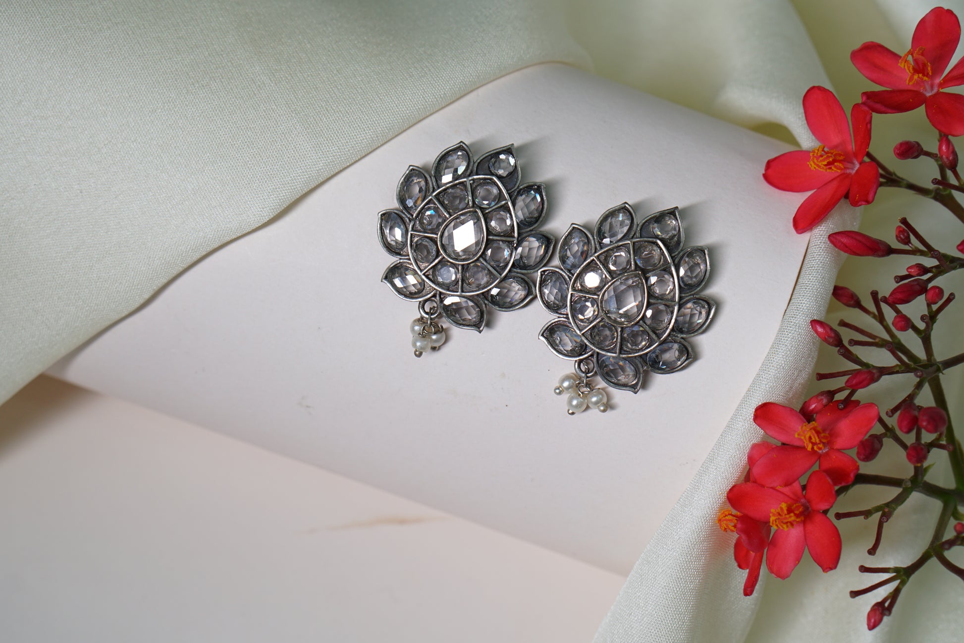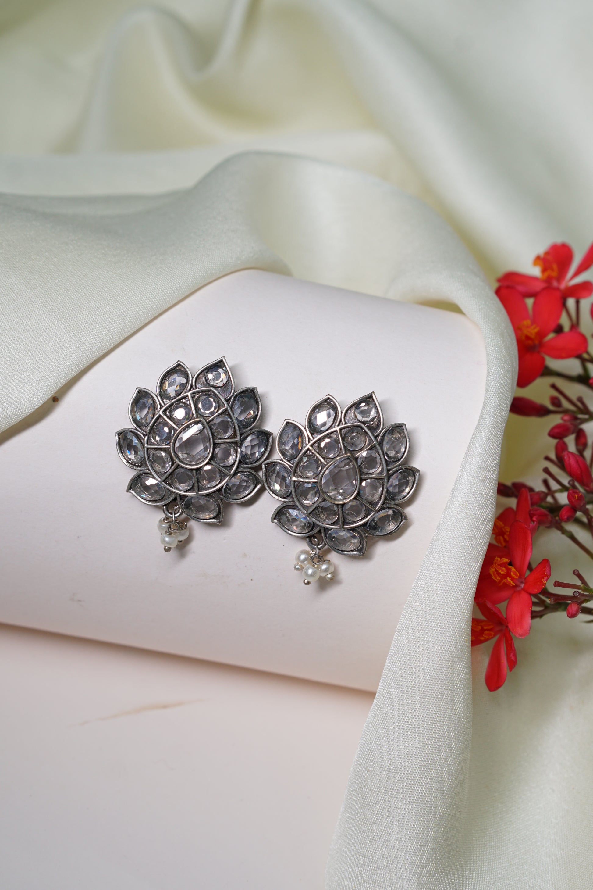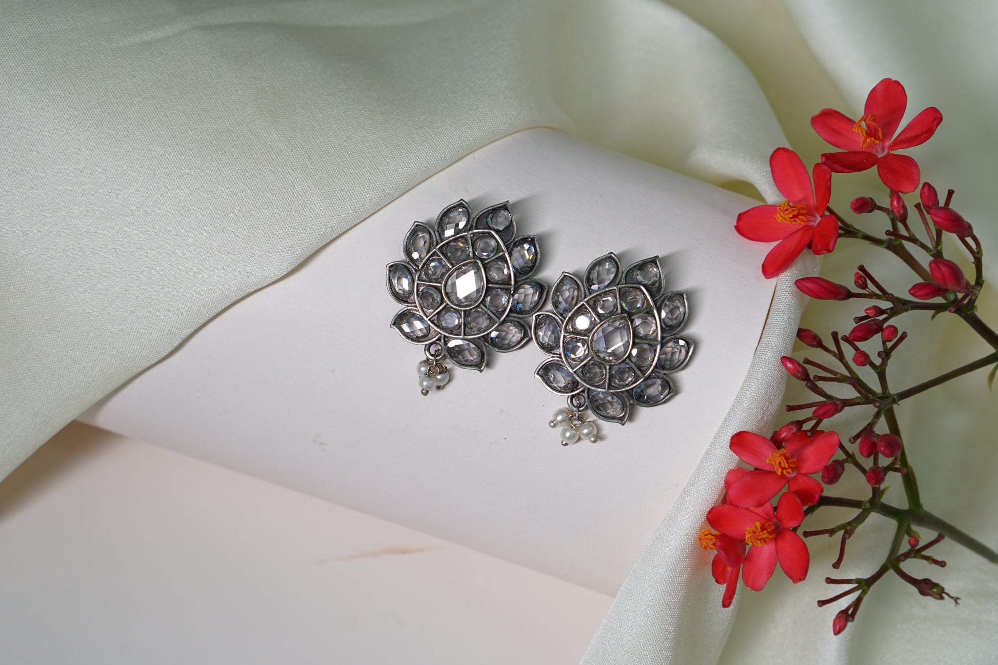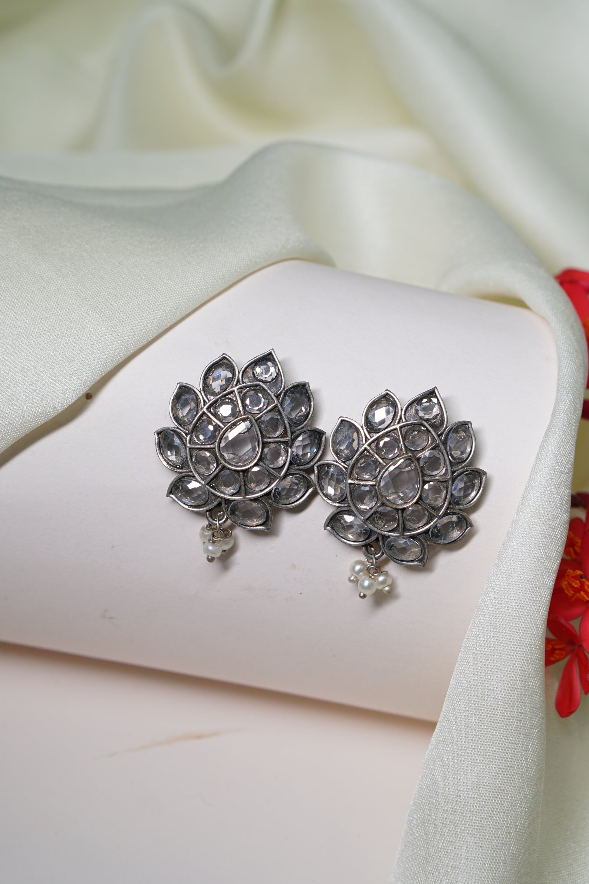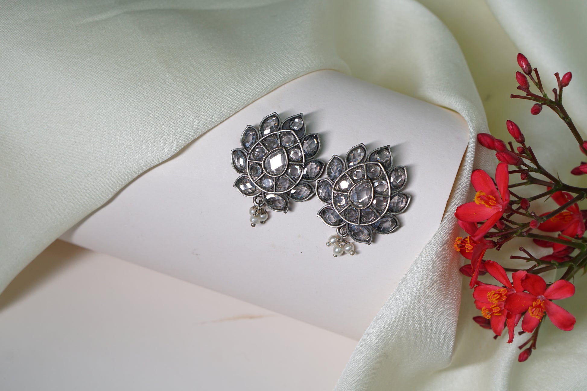 Oxidised earrings are stylish and vintage-inspired jewellery pieces that feature a darkened or blackened finish, created through a controlled oxidation process. This technique gives the metal (usually silver, brass, or copper) an antique, rustic, or gothic look while enhancing intricate designs.