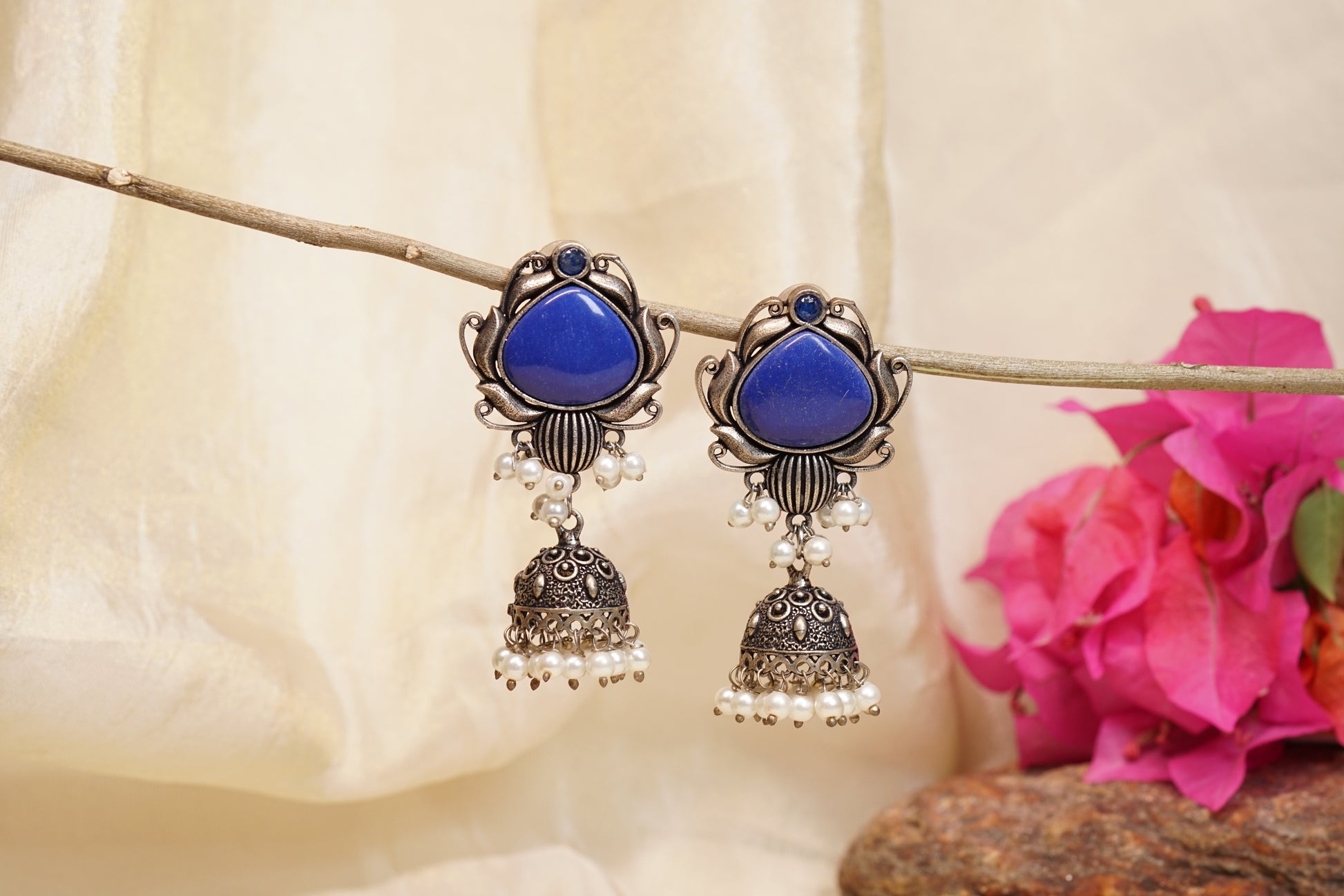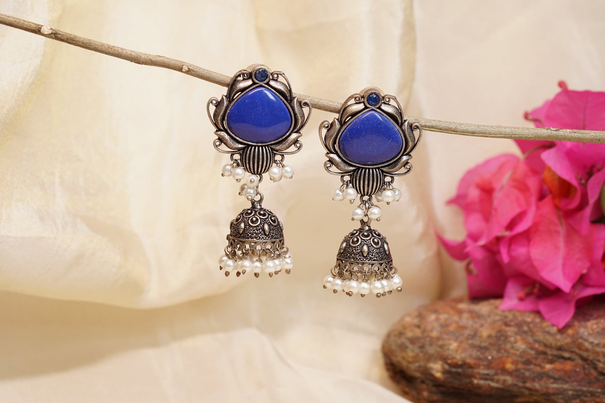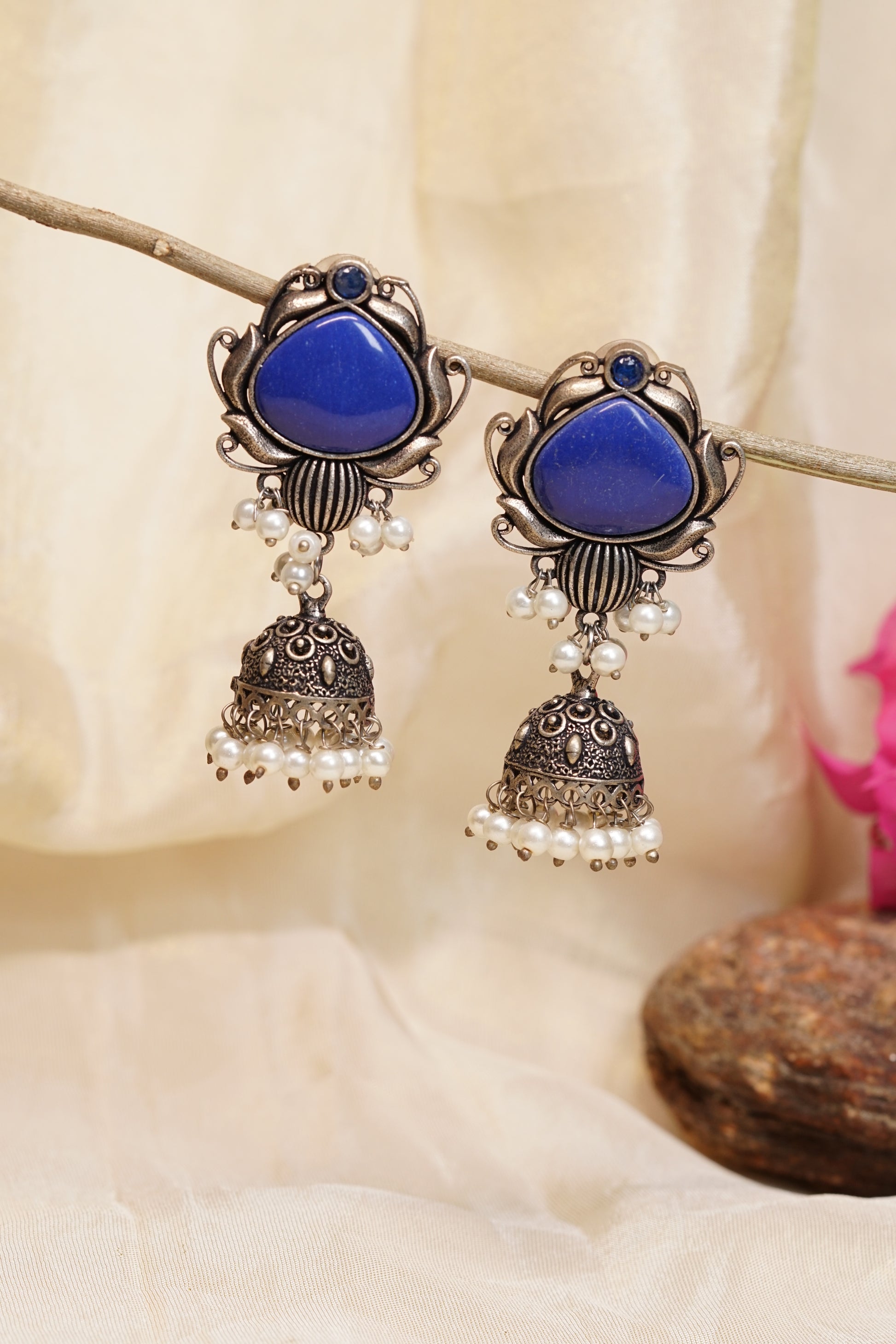 Featuring gold polished oxidised earring in silver mixed with brass metal.