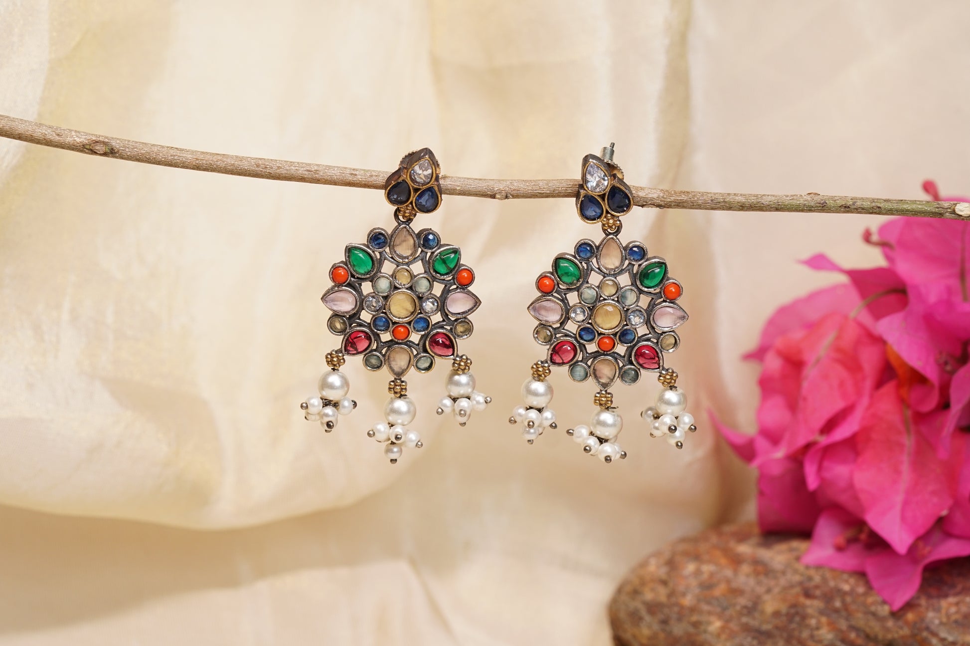 Featuring gold polished oxidised earring in silver mixed with brass metal.