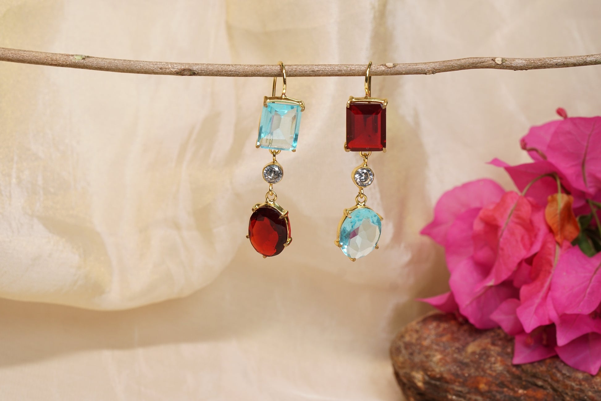 Featuring gold polished oxidised earring in silver mixed with brass metal.